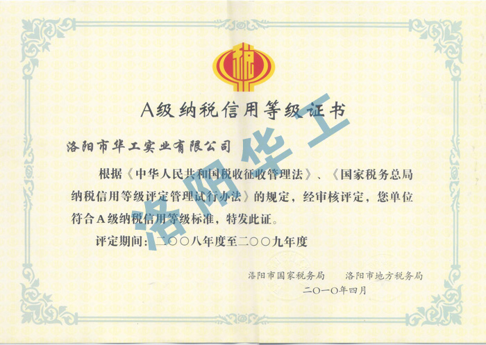 A級(jí)納稅信用等級(jí)證書(shū)